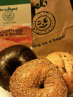 買って来ました!本場のベーグル)^o^(
